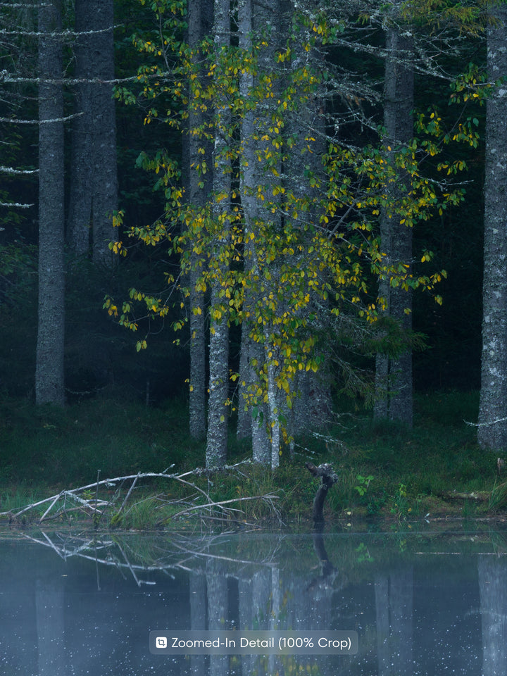 Misty Conifer Forest Lake Reflection Wall Art Print