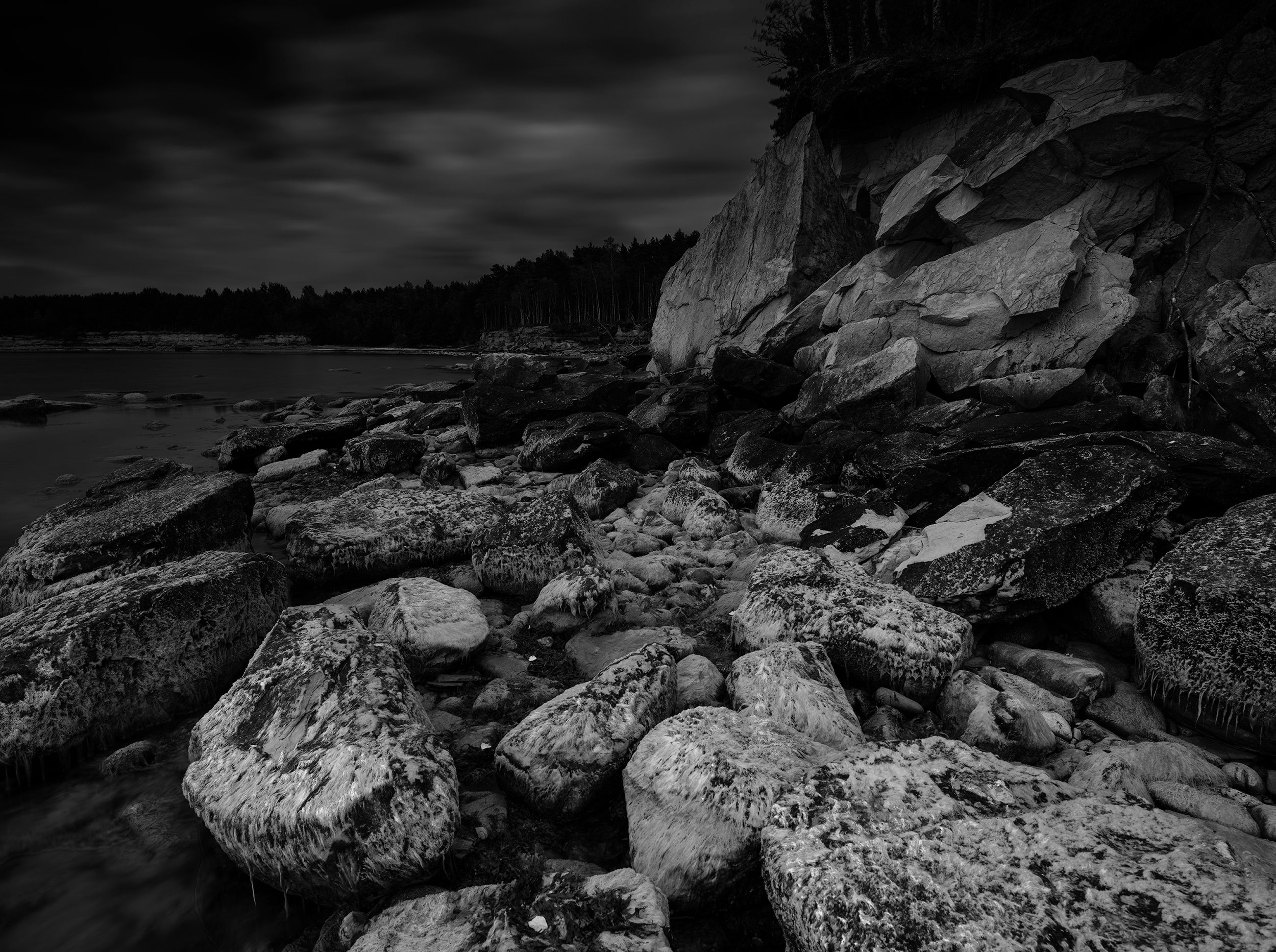 Rocky Baltic Coast at Night – Black and White Seascape Fine Art Print