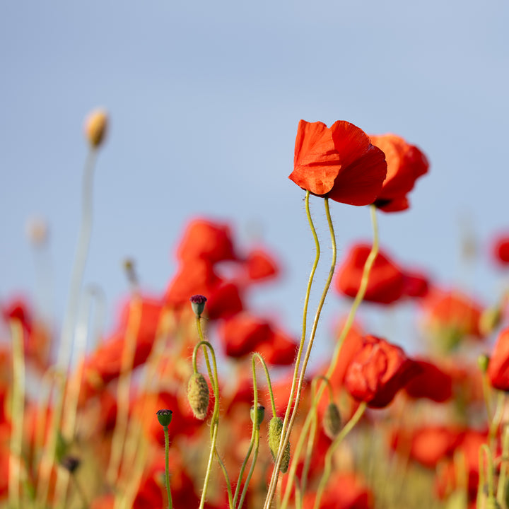 Scarlet Poppies Against the Blue Sky