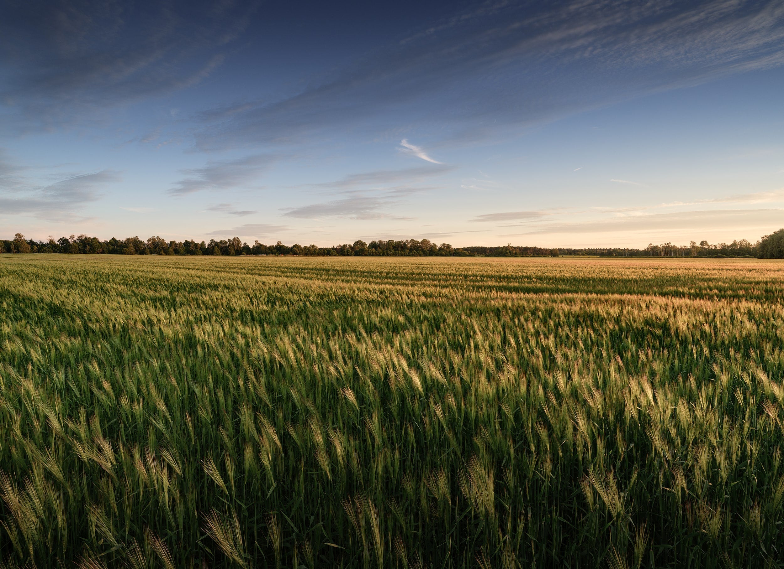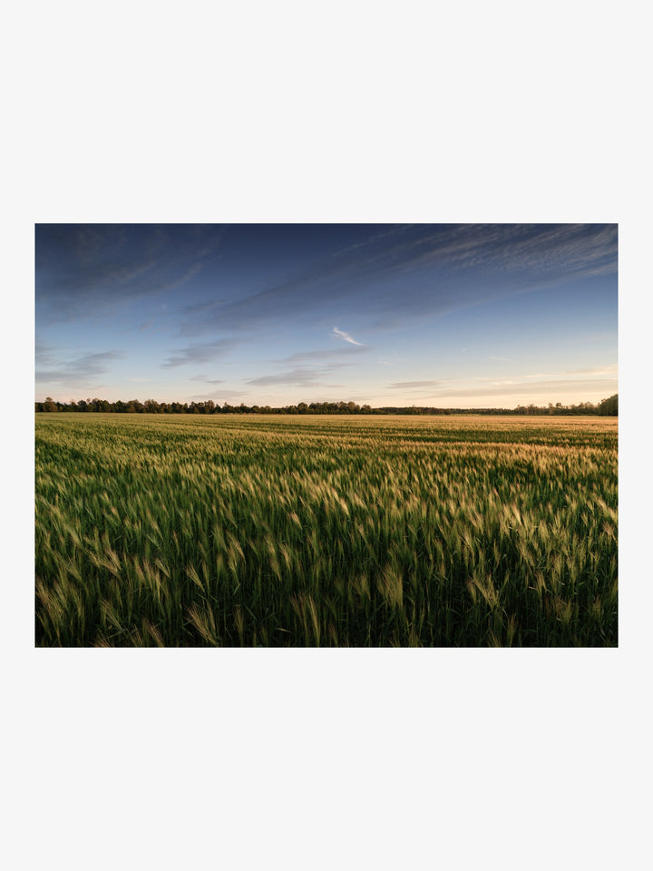 Green Field with Sunset Sky – Tranquil Landscape Fine Art Print