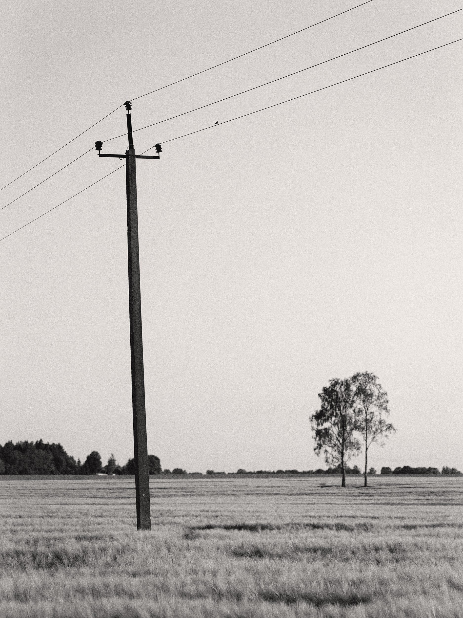 Trees and Power Lines in the Field – Symbolic Black and White Fine Art Print