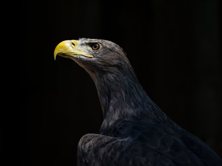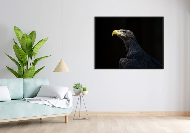 A majestic Steller’s sea eagle with a massive yellow beak and dark plumage emerges in dramatic light. Its sharp profile and intense gaze embody strength, confidence, and freedom. This fine art print makes a striking statement piece for an office, study, or living room, adding status and the raw energy of wildlife to your space.