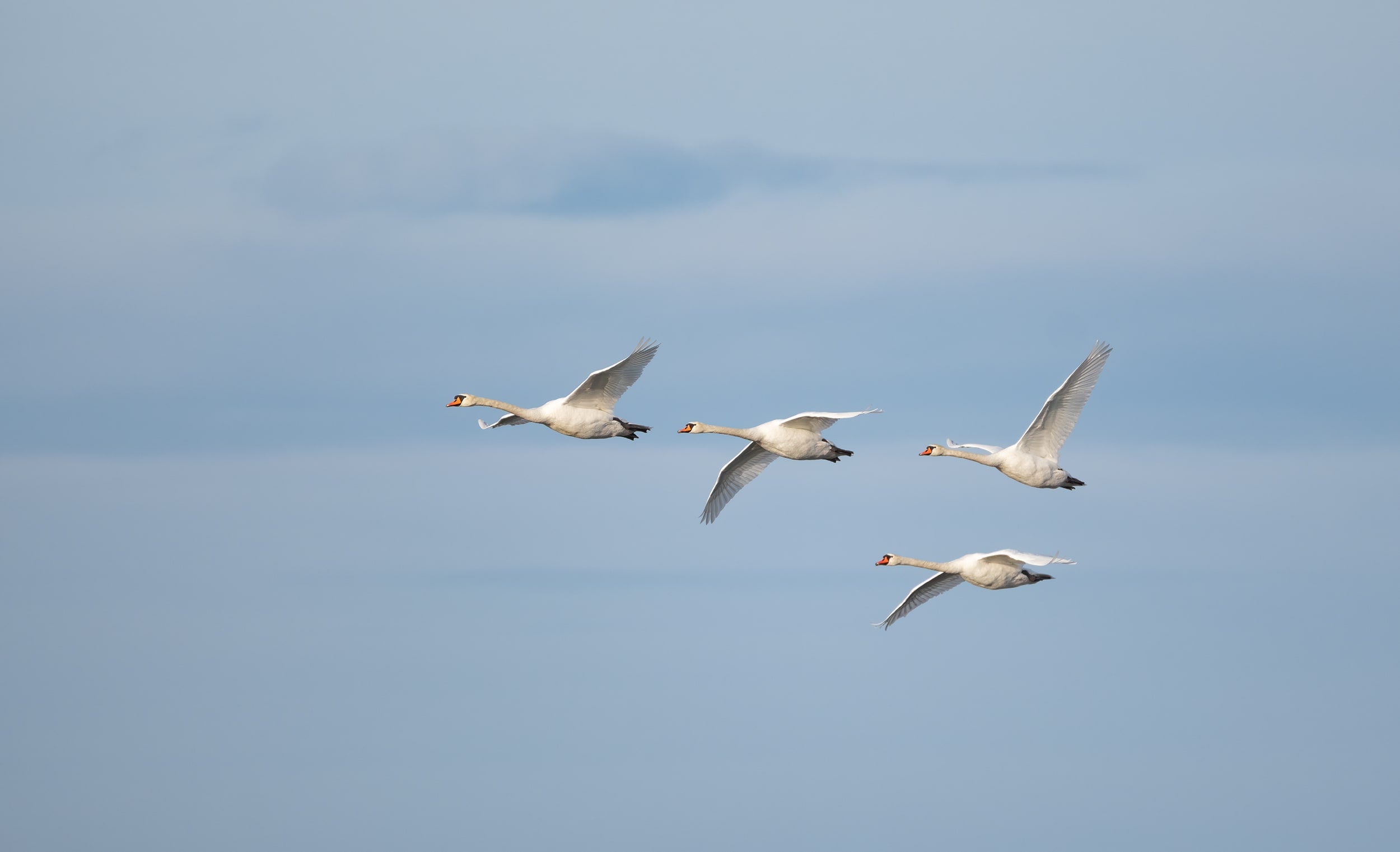 Swans Flying in the Sky – Elegant Nature Fine Art Print