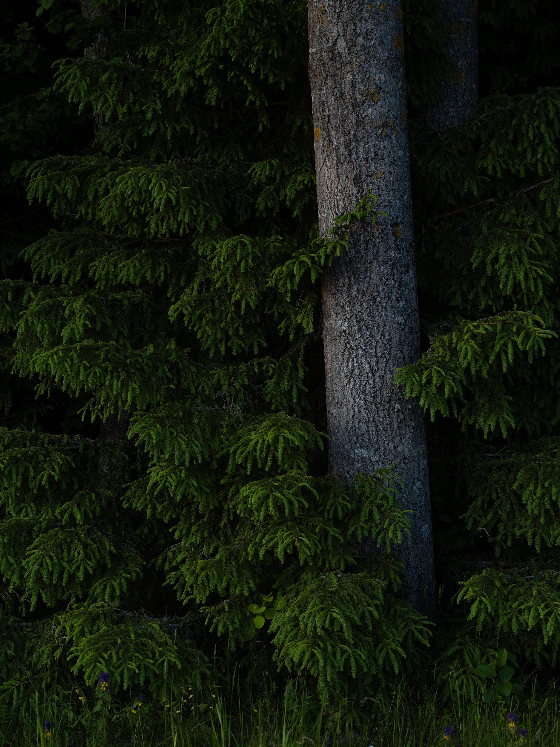 Spruce Branches and Tree Trunk in the Forest – Nature Fine Art Photography