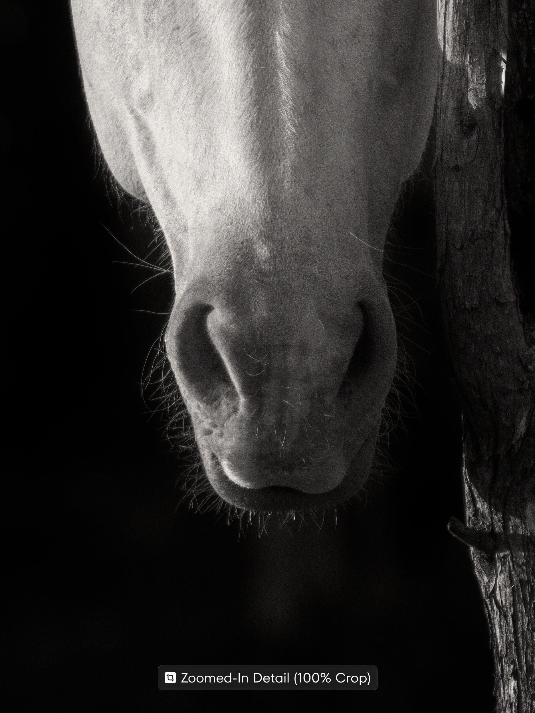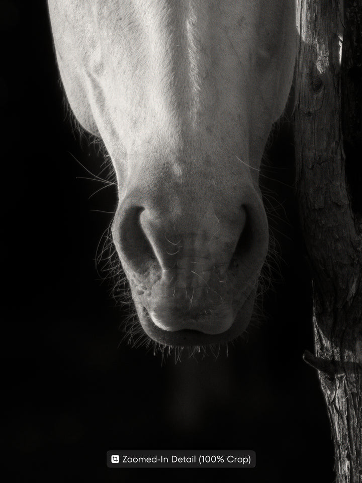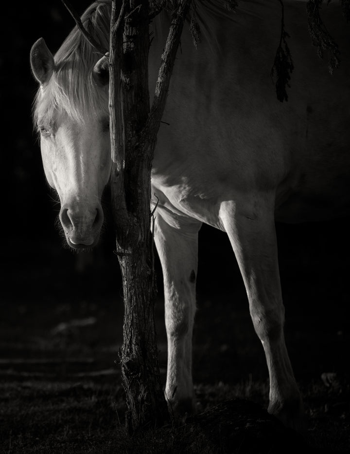 White Horse Behind a Tree – Black and White Fine Art Print