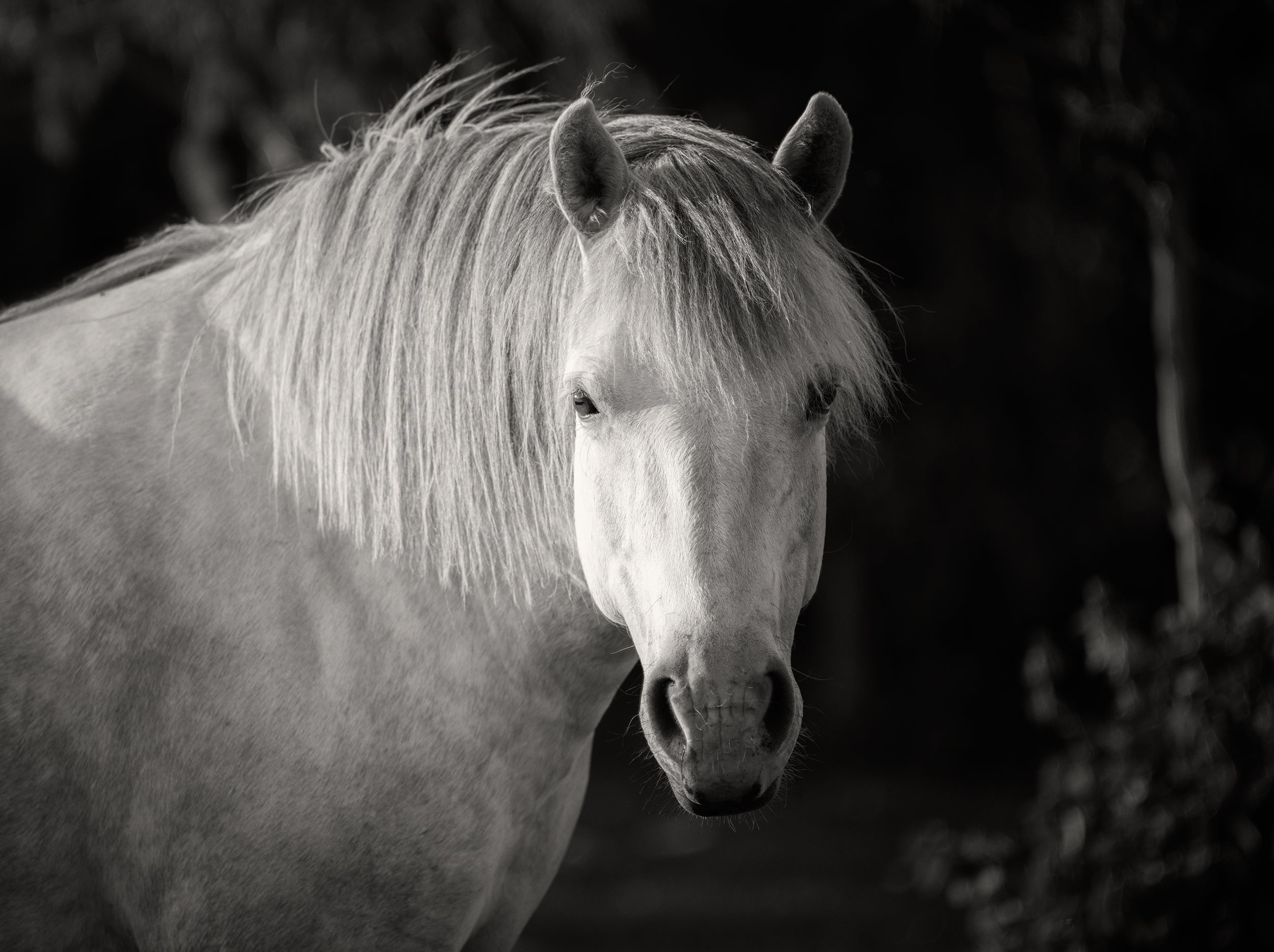 White Horse in Sunlight – Black and White Fine Art Print